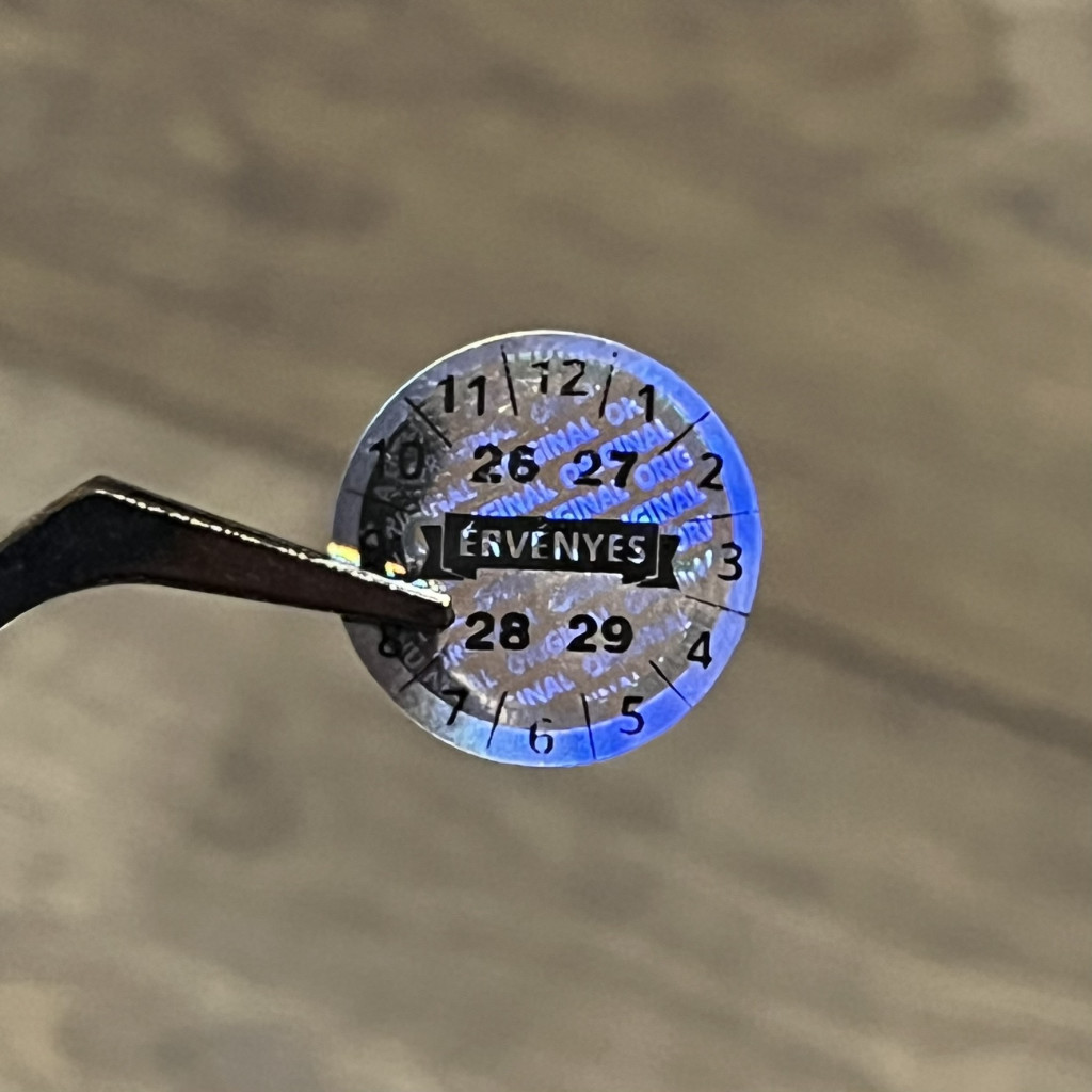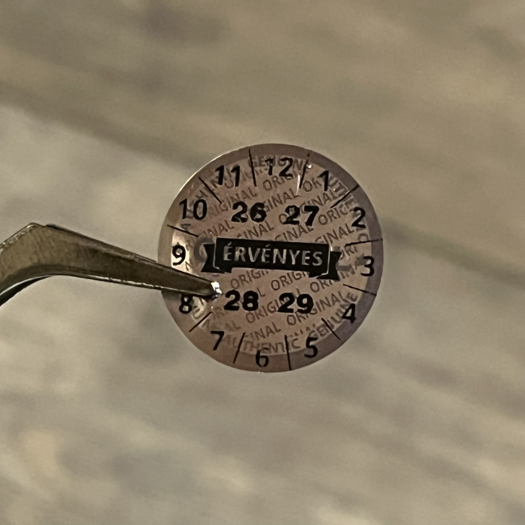 Der Aufkleber kann auch mit einem INDIVIDUELLEN UV-Sicherheitselement bestellt werden, das aus einem beliebigen Symbol, Schriftzug oder Logo bestehen kann, das mit bloßem Auge nicht sichtbar ist, jedoch unter UV-Licht erscheint.